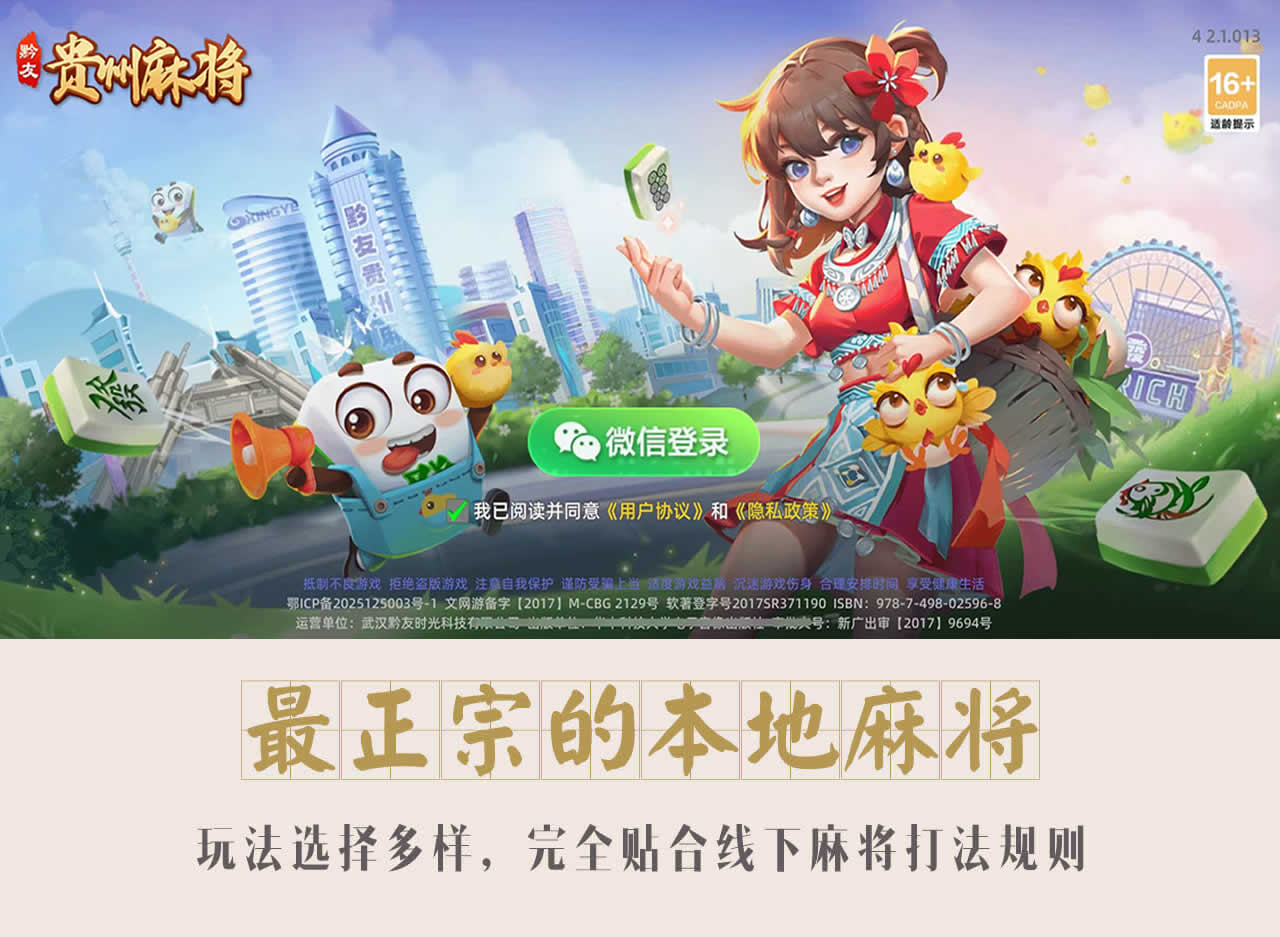 黔友贵州麻将是特为东贵州人民量身定制的休闲手游,独创防作弊模式,杜绝伙牌,全凭手气,全程最流畅的画面效果,地道的方言配音,优质的游戏体验,让你更轻松愉快的游戏。
